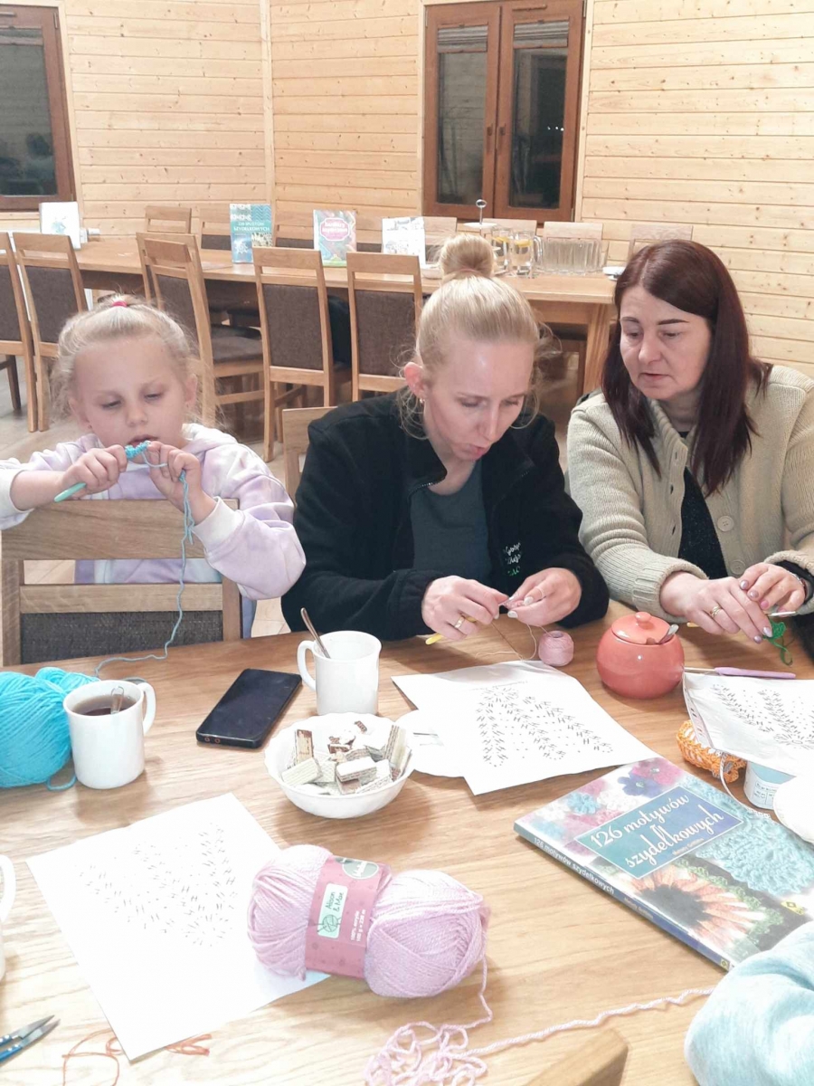W środę 28 lutego na zaproszenie Pań z Koła Gospodyń Wiejskich Długołęka odwiedziłyśmy mieszkanki tej wioski. Panie obecne na warsztatach szydełkowych, przy kawie i cieście, stawiały swoje pierwsze kroki w sztuce rękodzielniczej. Ćwicząc oczka, słupki oraz półsłupki przekonały się, że szydełkowanie to przyjemne, relaksujące zajęcie. Dzięki niemu można wyczarować piękne i oryginalne rzeczy. Po początkowych trudnościach adeptki szydełkowania wykonały swoje pierwsze osłonki z nici na jaja. Uświetnią one koszyki do święconki, będąc nietuzinkową dekoracją.