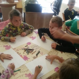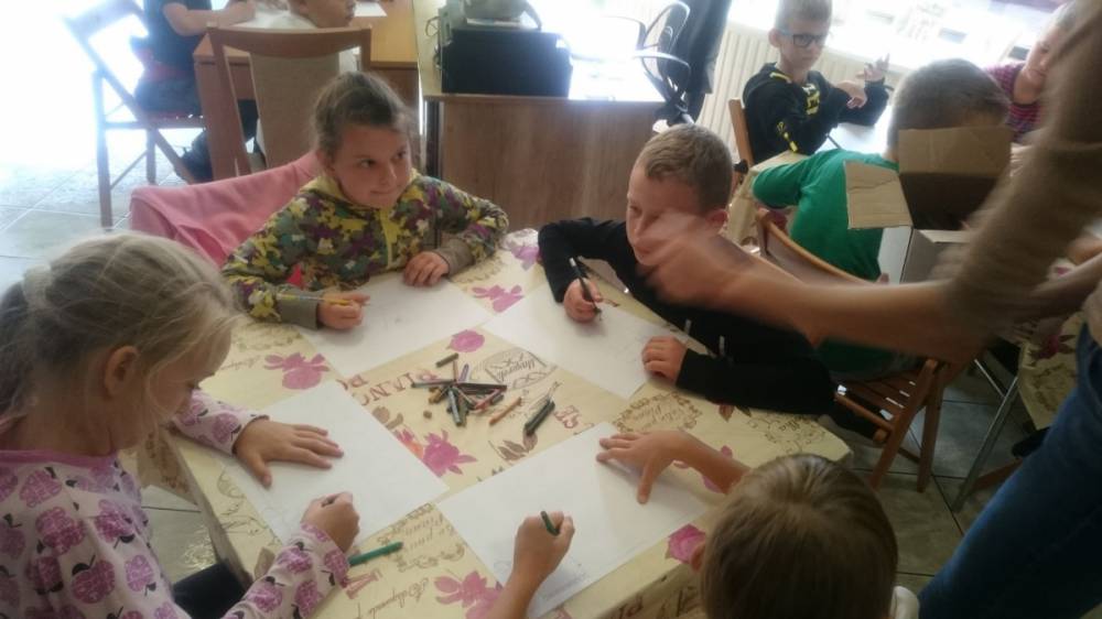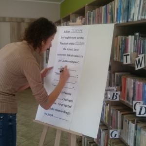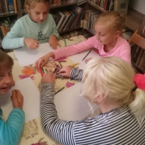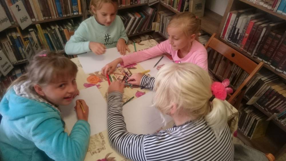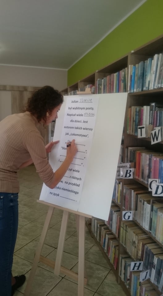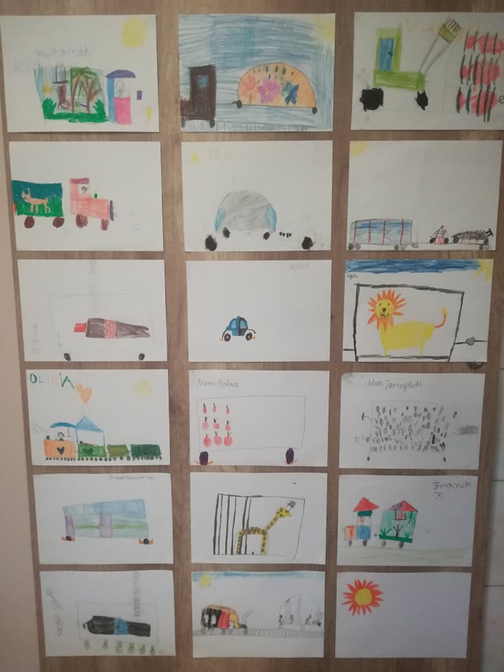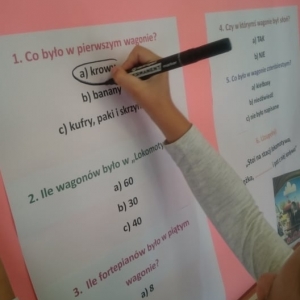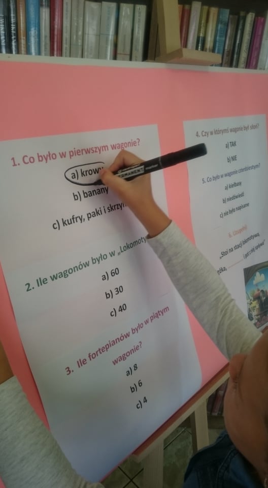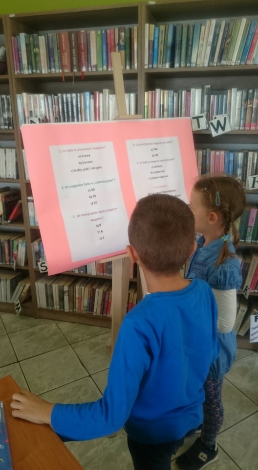 Dla rozgrzania umysłów najmłodszych, bibliotekarka przygotowała gry słowne oraz quiz z wiedzy o wspomnianym wierszu „Lokomotywa”. Koniec spotkania obfitował w kolory i kreatywne pomysły. Uczniowie tworzyli ilustracje wagonów, które nie pojawiły się w utworze Tuwima.