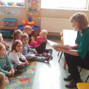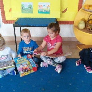 W październiku bibliotekarki były częstymi gośćmi w kobylińskim przedszkolu. Prezentowały najmłodszym ciekawe interaktywne książki. Zachęcały w ten sposób do odwiedzania biblioteki, wypożyczania książek. Nieodzownym punktem wizyt w przedszkolu było głośne czytanie. Dzieci wysłuchały m.in. bajek ,,Biegnij dynio, biegnij” , ,,Cztery zwykłe miski”.