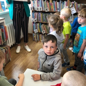 Była to pierwsza wizyta przedszkolaków w naszej książnicy, podczas której dowiedziały się podstawowych informacji, takich jak zasady poszanowania książek, ich rodzaje, tematyka, różnice ze względu na oprawę, ilość stron, format, ilustracje lub ich brak.