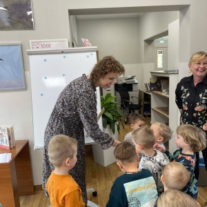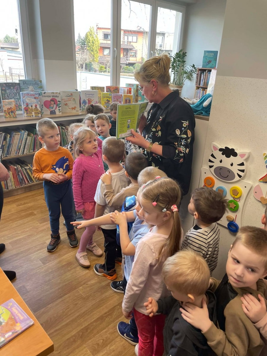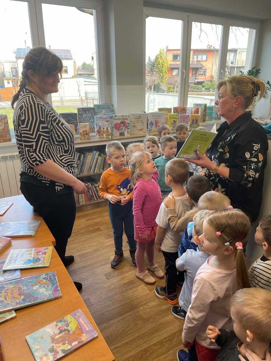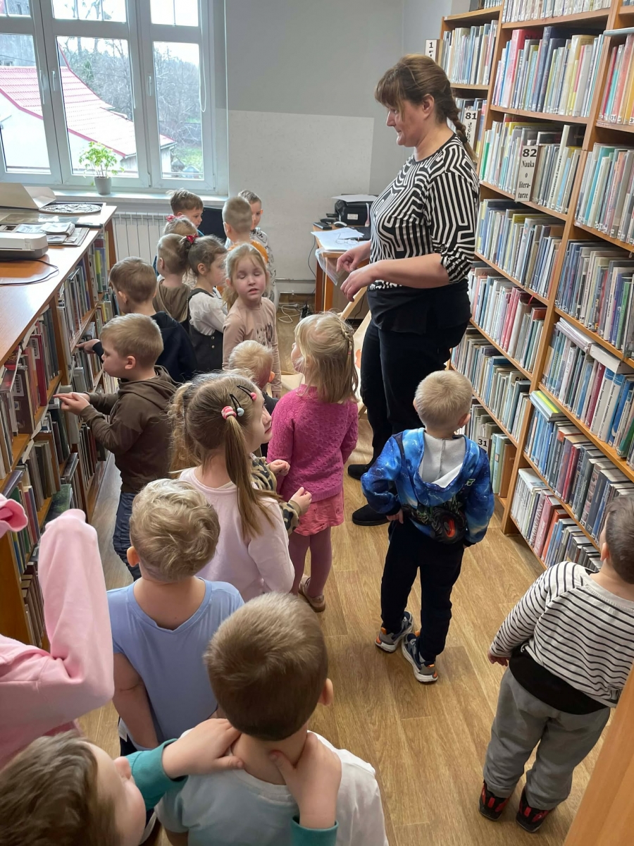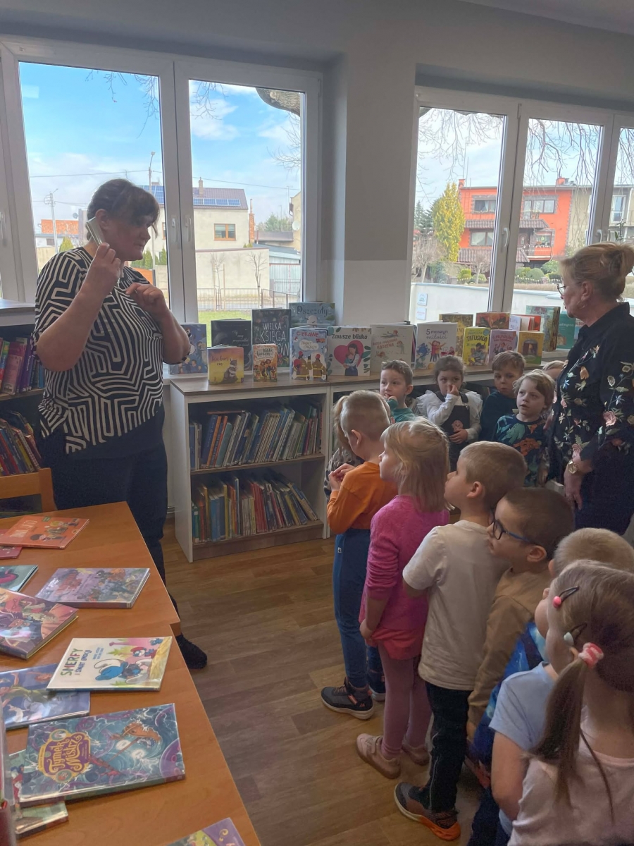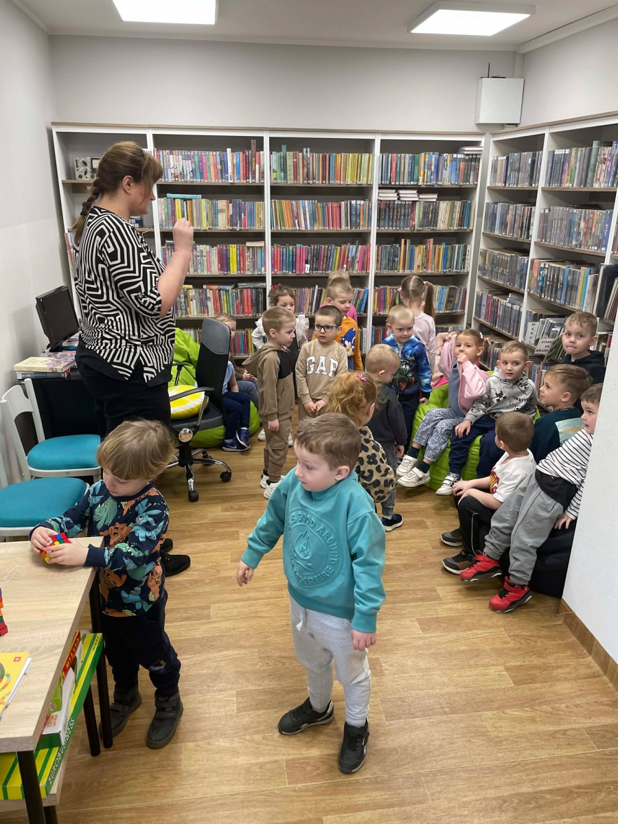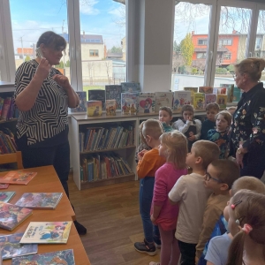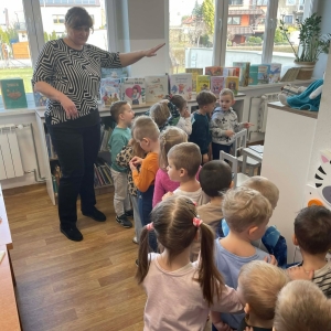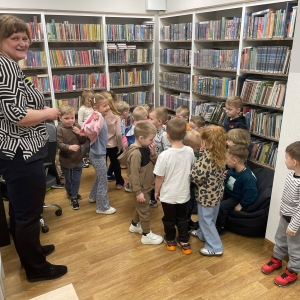 Spotkanie rozpoczęliśmy od zwiedzania biblioteki. Dzieci dowiedziały się, w jaki sposób należy szanować książki. Duże wrażenie zrobiły na nich pomieszczenia przeznaczone dla najmłodszych czytelników oraz dla młodzieży.