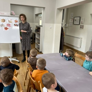 Pozostając w okresie Wielkiego Postu, rozmawialiśmy o Wielkanocy. Przedszkolacy usłyszeli, dlaczego obchodzimy to ważne święto oraz jakie towarzyszą mu tradycje. Jedną z nich jest święconka, czyli pokarmy święcone w Wielką Sobotę, umieszczane w wiklinowym koszyczku. Najmłodsi poznali tradycyjne produkty znajdujące się w koszyczku wielkanocnym oraz dowiedzieli się, jakie mają one znaczenie.