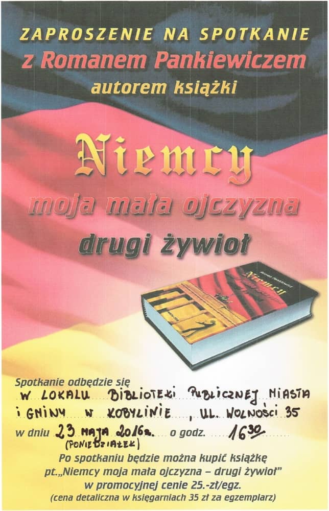 Biblioteka Publiczna Miasta i Gminy w Kobylinie zaprasza na spotkanie z Romanem Pankiewiczem, które odbędzie się 23 maja o godz. 16.30 w lokalu biblioteki.