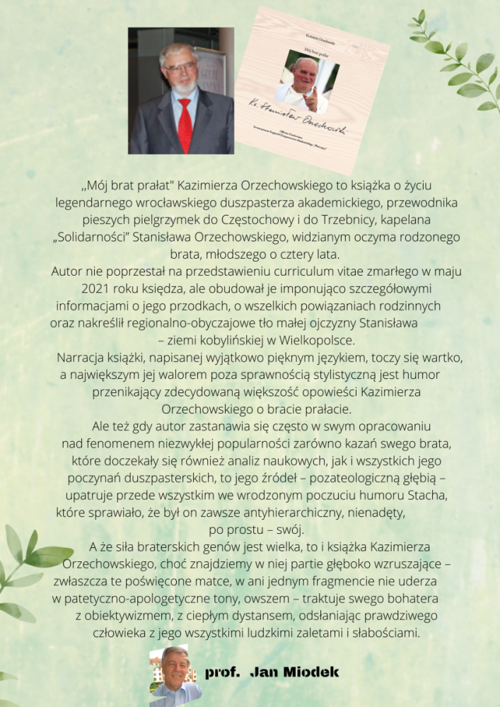 - ,,Mój brat prałat. Ks. Stanisław Orzechowski. Biografia z uwzględnieniem rodowodu tudzież różnych przypadków z życia rodziny wziętych” – Kazimierz Orzechowski