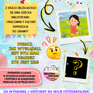 „ZGADNIJ KTO TO!” to zabawa polegająca na odgadnięciu kto jest kim na podstawie zaprezentowanych zdjęć z dzieciństwa bibliotekarek oraz pracowników kultury. Przedstawiamy współczesne oraz młodzieńcze wizerunki osób – konkursowych zagadek.