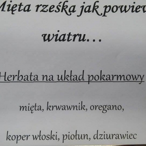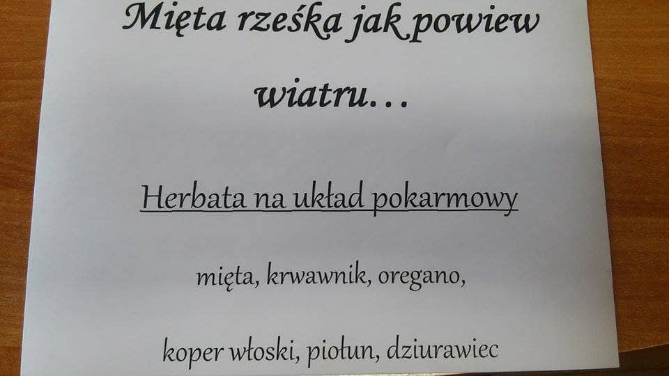 Podczas spotkania można było napić się różnego rodzaju herbatek ziołowych. Największą popularnością cieszyła się herbata oczyszczająca organizm. Skład niektórych herbat publikujemy w fotorelacji ze spotkania.