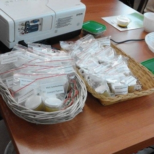 Wszyscy zaproszeni goście wzięli udział w konkursie, który polegał na odgadnięciu poszczególnych nazw ziół z zasuszonej mieszanki ziołowej. Nagrodą były maści żywokostowe.